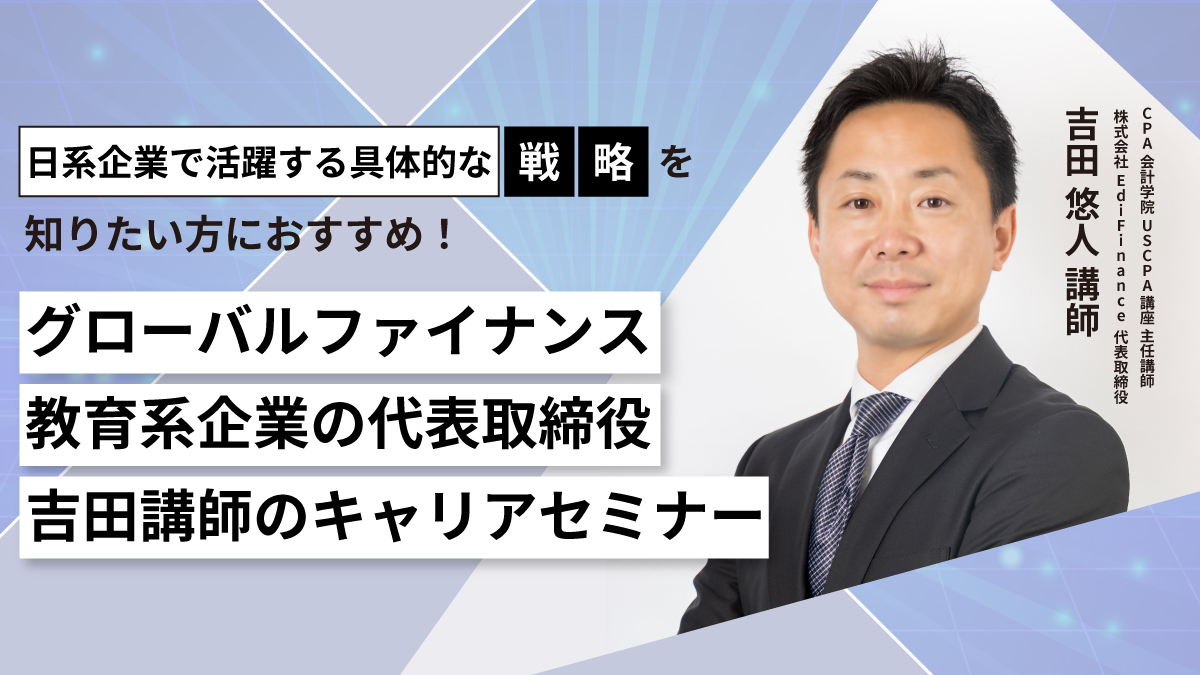 グローバルファイナンス教育系企業の代表取締役であり、CPA会計学院のUSCPA講座の講師が、会計・財務未経験からUSCPA取得をきっかけにキャリアを大きく変えた実例を、リアルなエピソードとともにご紹介!