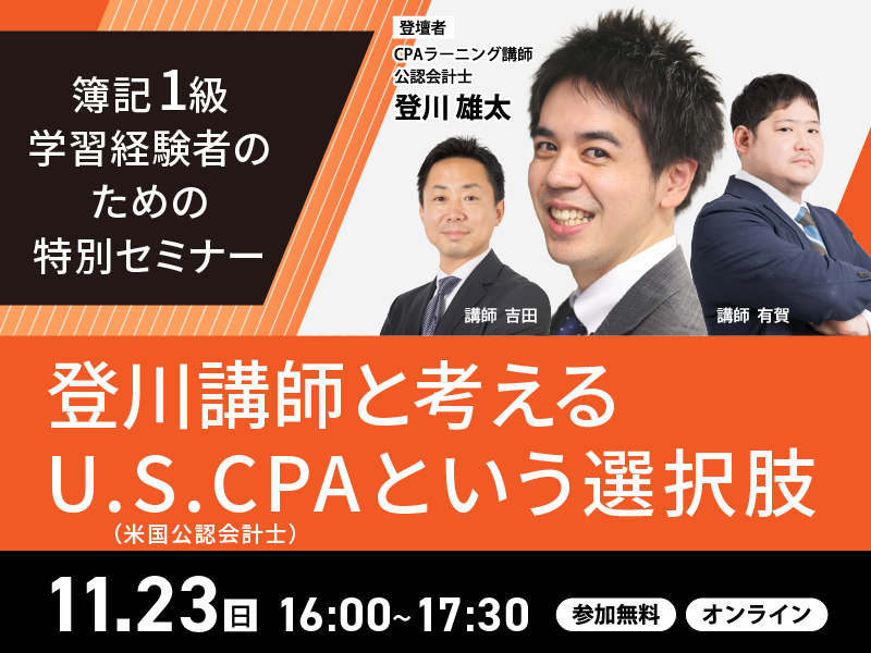 | 対象者 | U.S.CPAの資格に興味のある簿記1級学習中の方、および取得者 |