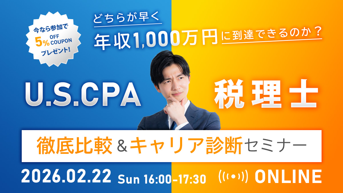 | 参加特典 | U.S.CPA講座5%オフのクーポンコード |