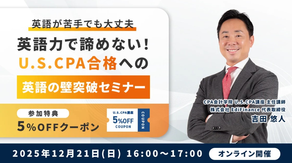「USCPAに興味があるけれど、英語力がネックで諦めている...」 そんな方のために、このセミナーはあります!