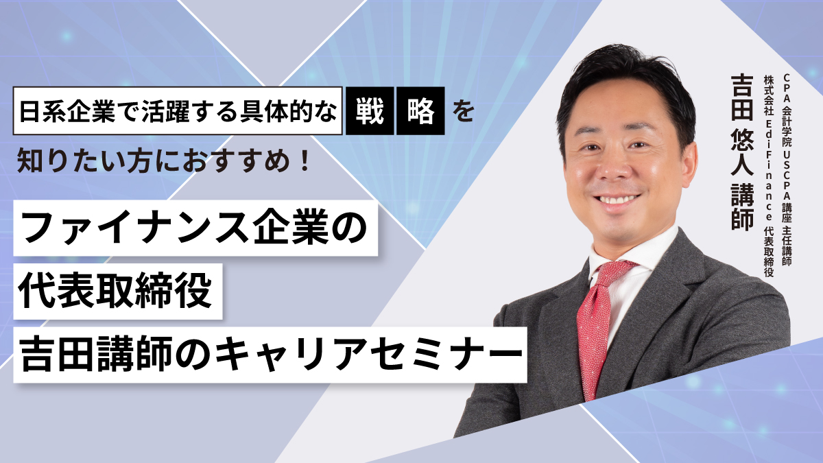 グローバルファイナンス教育系企業の代表取締役であり、CPA会計学院のUSCPA講座の講師が、会計・財務未経験からUSCPA取得をきっかけにキャリアを大きく変えた実例を、リアルなエピソードとともにご紹介!